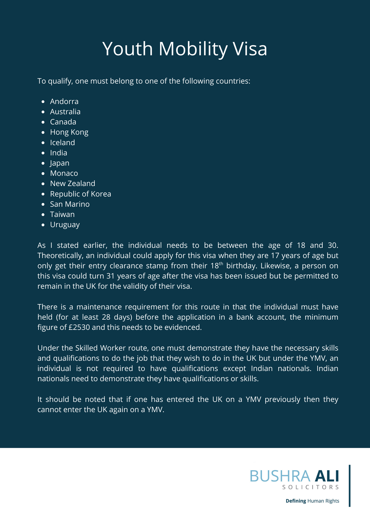 Youth Mobility Visa